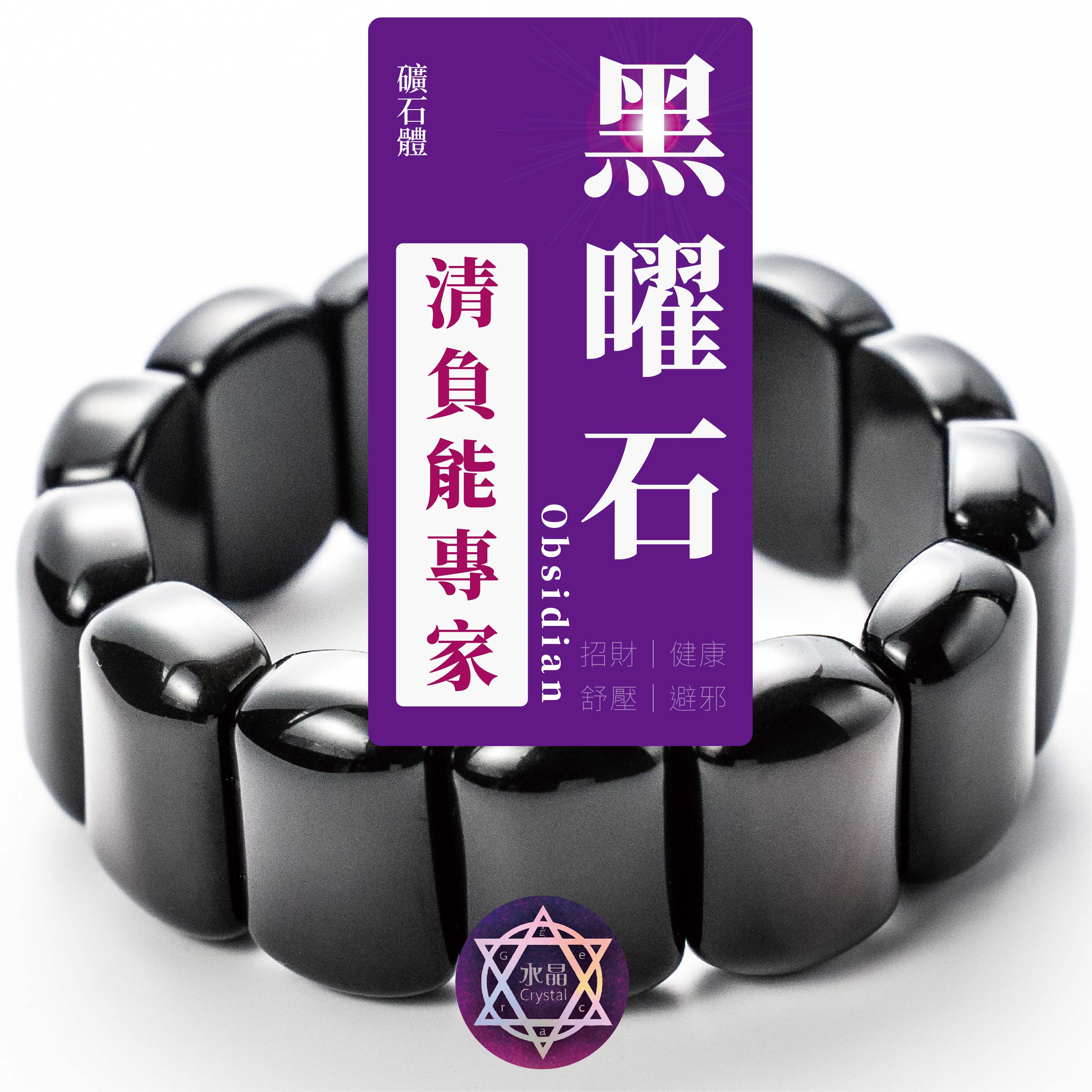 黑曜石能闢邪化煞,避免負面能量的干擾,強力化解 負能量,還能去除難聞的酶味與晦氣,一般帶右手。 黑曜石對應海底部,能助排出身體上的病氣、濁氣對 于身體及個人運氣有莫大的幫助。避邪、化凶,放于 家居上,有鎮宅之用。屬羊、猴、龍帶可助財運。